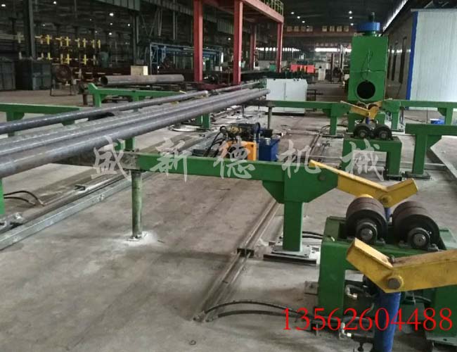 今年來,隨著全球市場對石油的需求量放大,大城市的地下公輔設施的開挖,石油鉆桿、油桿以及非開挖鉆桿等高附加值產品的生產也迅速增長。市場對特殊鋼管的需求也越來越大,質量的要求也越來越高,對鋼管加工設備的能力要求也越來越高。鋼管內壁修磨機,用于磨除熱軋高碳鋼管、不銹鋼、合金鋼管和冷拔氣瓶管內表面的裂紋、結疤、氧化膜、內折皺、螺紋線等缺陷。也可用于鋼管內表面的磨削減重、拋光處理;從而獲得表面質量更高、更美觀的鋼管產品。諸城盛新德機械有限公司參照DEMAG MEER公司的產品,結合國內自身特點及現在環境保護的大趨勢,研究開發出具有中國特色的新型鋼管修磨機設備,其技術性能已達到(部分參數已超過)國外同類設備先進水平,并在德新鋼管、山東墨龍有多套應用于工業生產。設備主要由移動式鋼管旋轉臺車系統、移動式磨削臺車系統、移動式粉塵回收系統、、鋼管翻管臺架系統、電器控制系統組成。