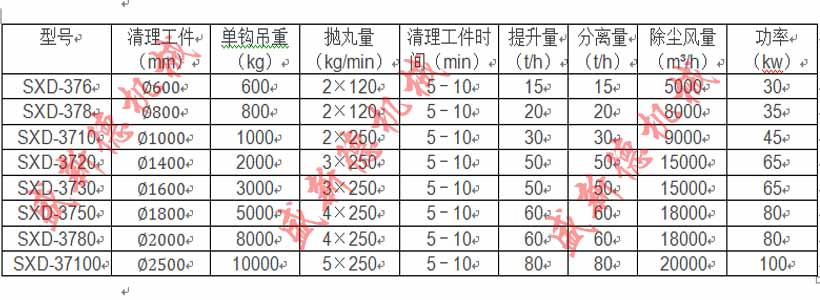 四、吊鉤式拋丸機技術參數: