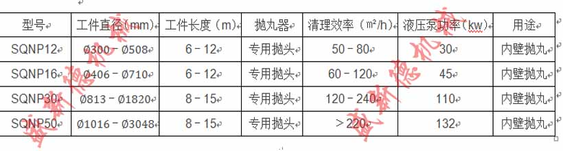 五、鋼管內(nèi)壁拋丸機(jī)技術(shù)參數(shù):