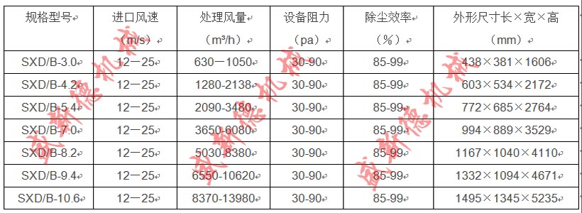 三、旋風除塵器技術參數(shù):